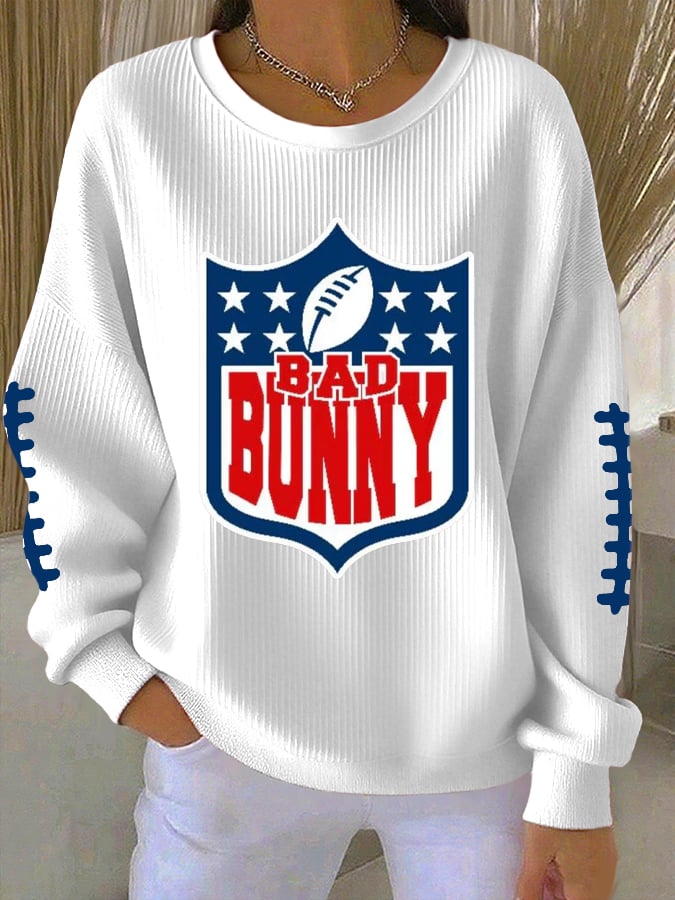 Women's Rugby Print Knitted Crew Neck Long Sleeve Top2