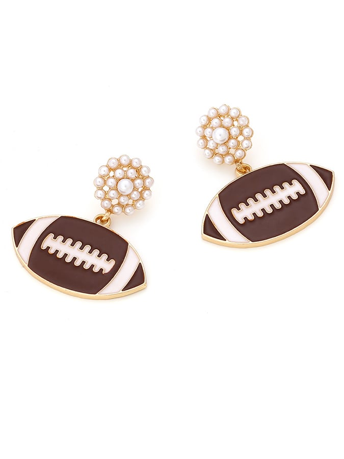 Retro Alloy Pearl Football Stud Earrings