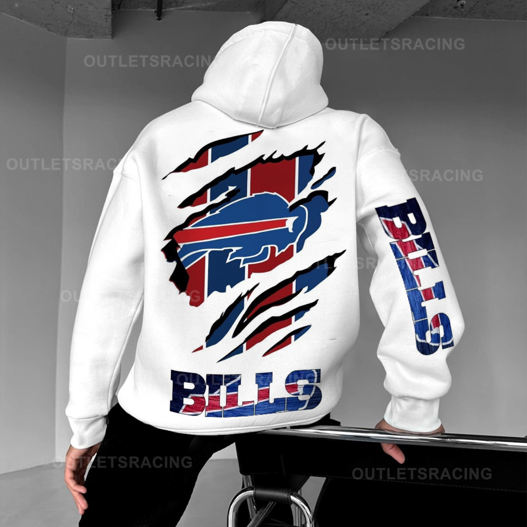 Unisex Buffalo Bills Printed Hoodie – Bold Zip Up Sweatshirt for Fans