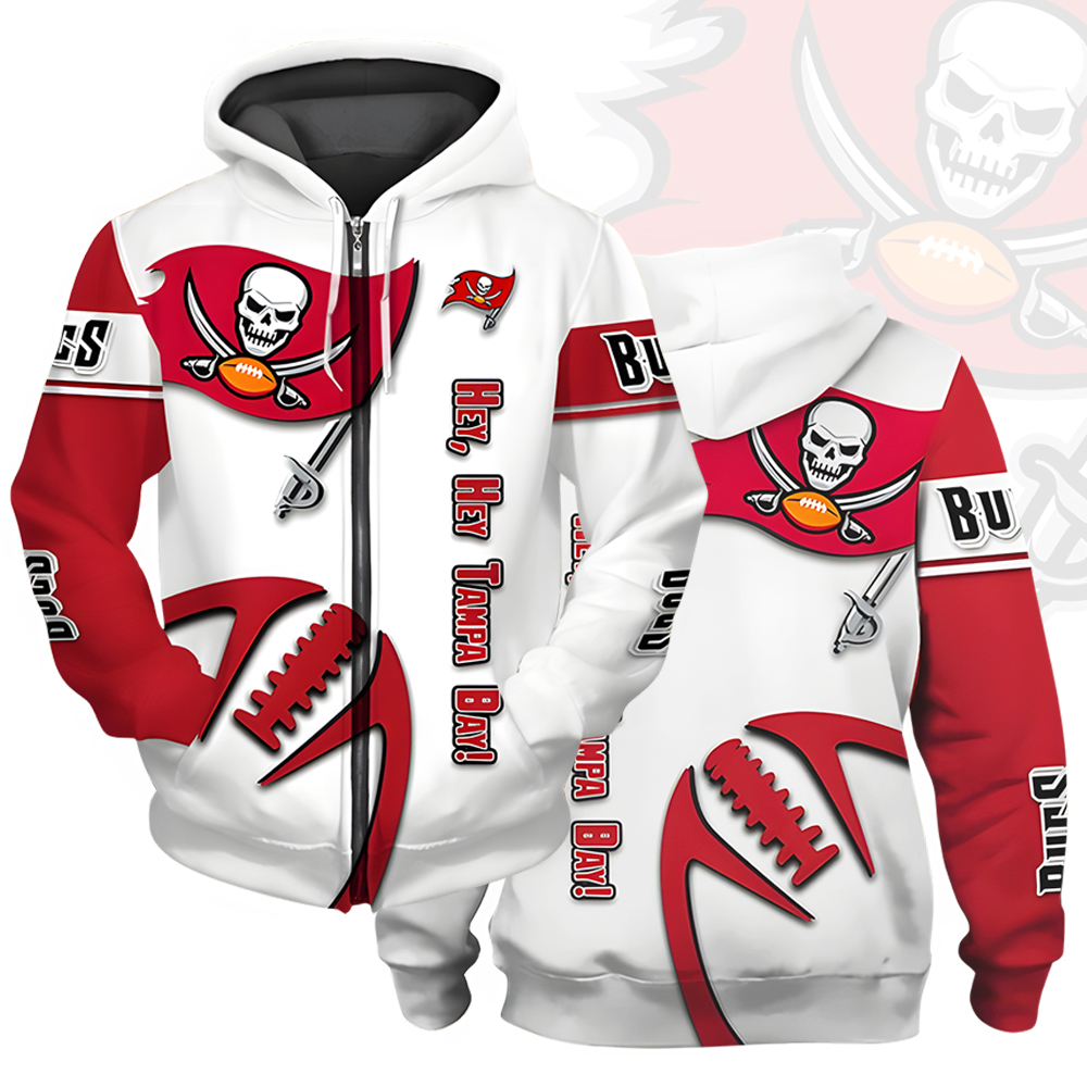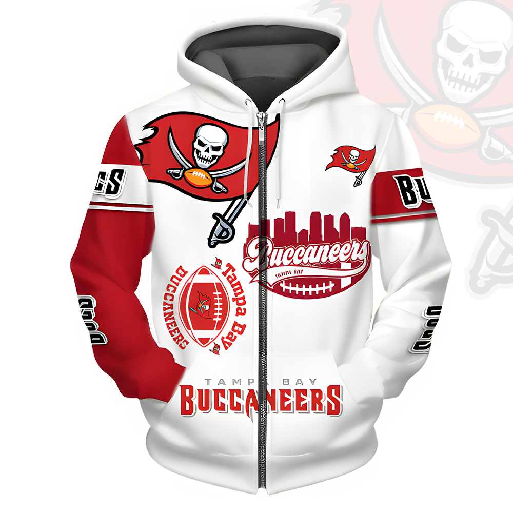 Unisex Tampa Bay Buccaneers Printed Hoodie – Bold Zip Up Sweatshirt For Fan