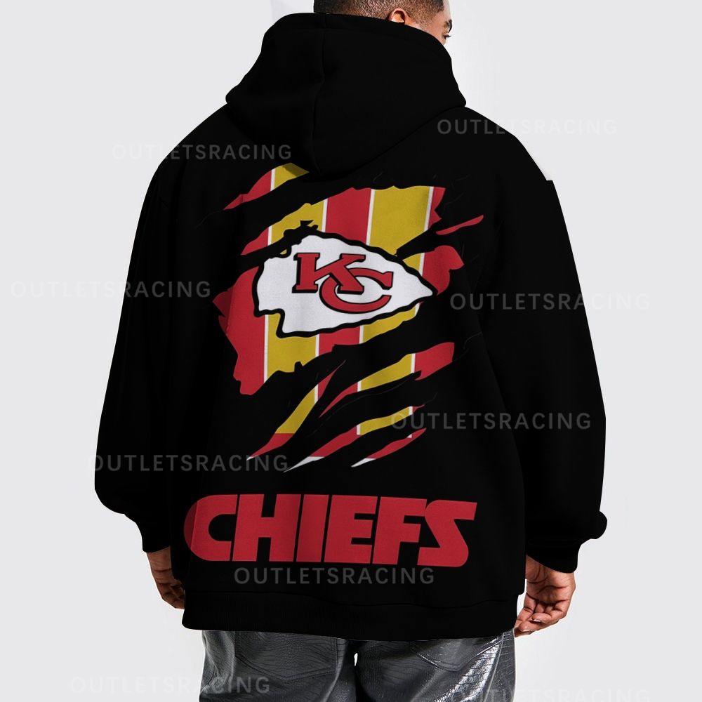 Unisex Kansas City Chiefs Printed Hoodie – Bold Zip Up Sweatshirt for Fans