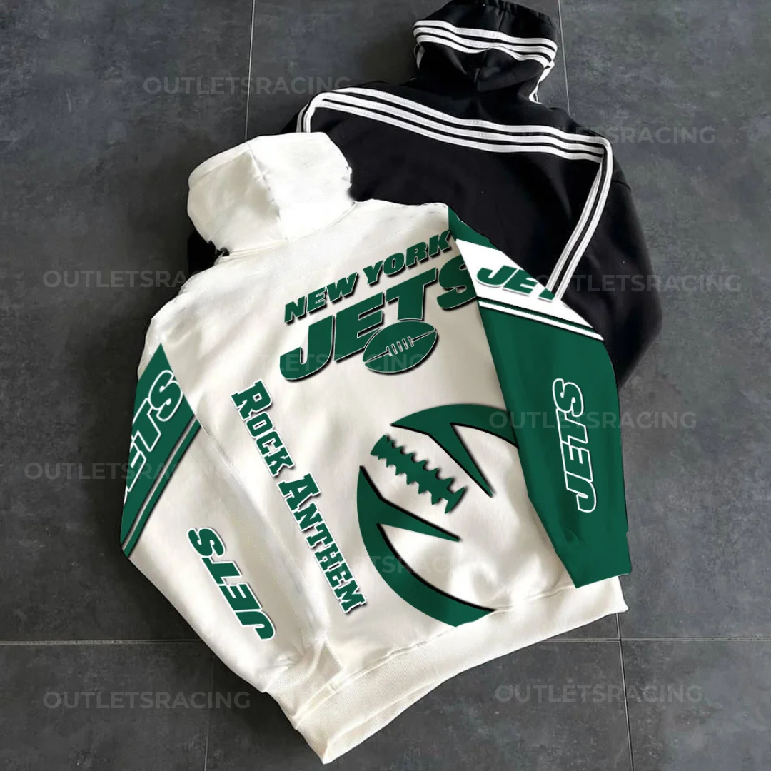 Unisex New York Jets Printed Hoodie – Bold Zip Up Sweatshirt for Fans